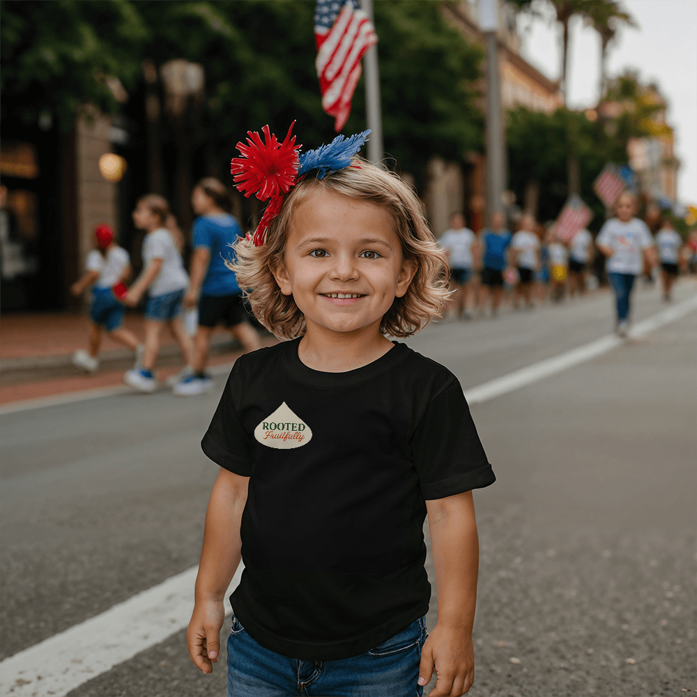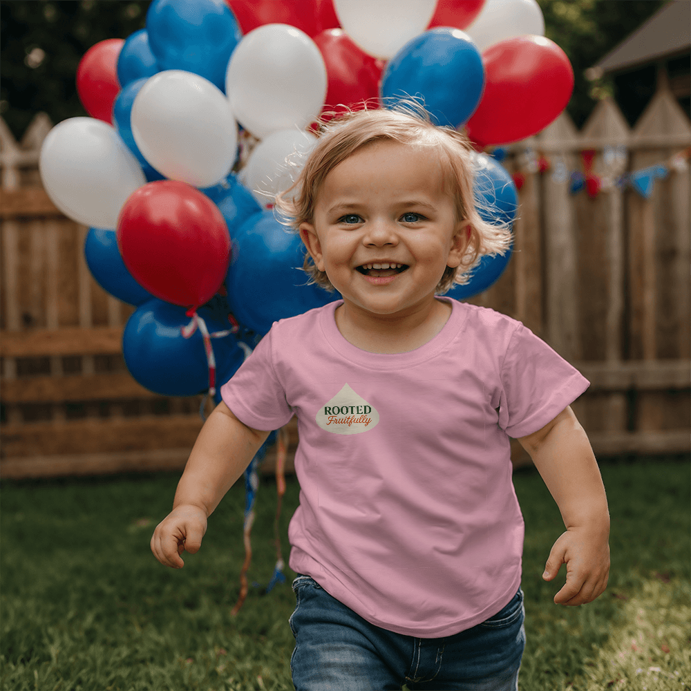 This inspirational Rooted Fruitfully Toddler's T-shirt is great to wear on any day giving off a free moving vibe.